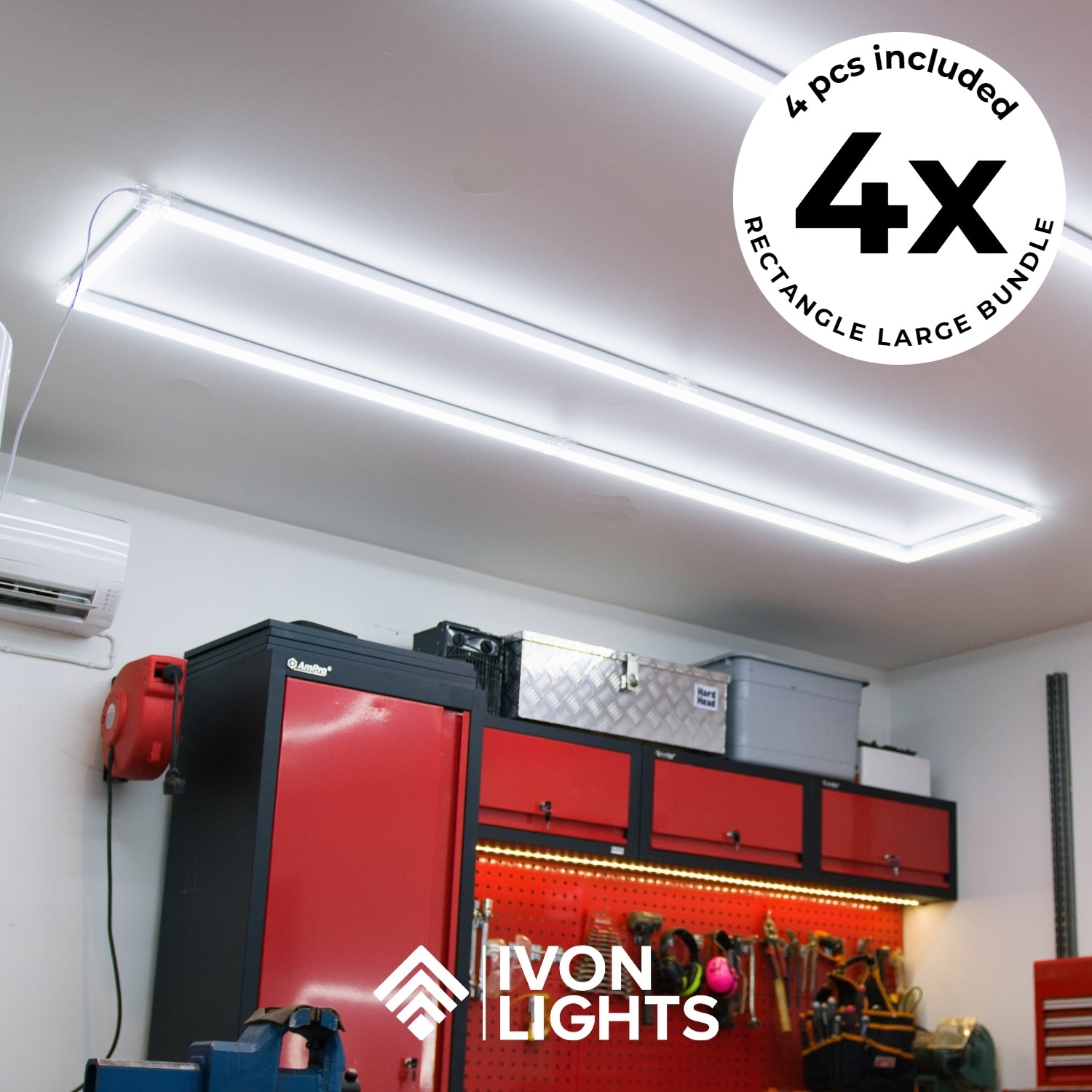 Helhetsbild av IVON Rectangle Large belysning 44x240cm 4-pack, med modern LED-design for garaget.