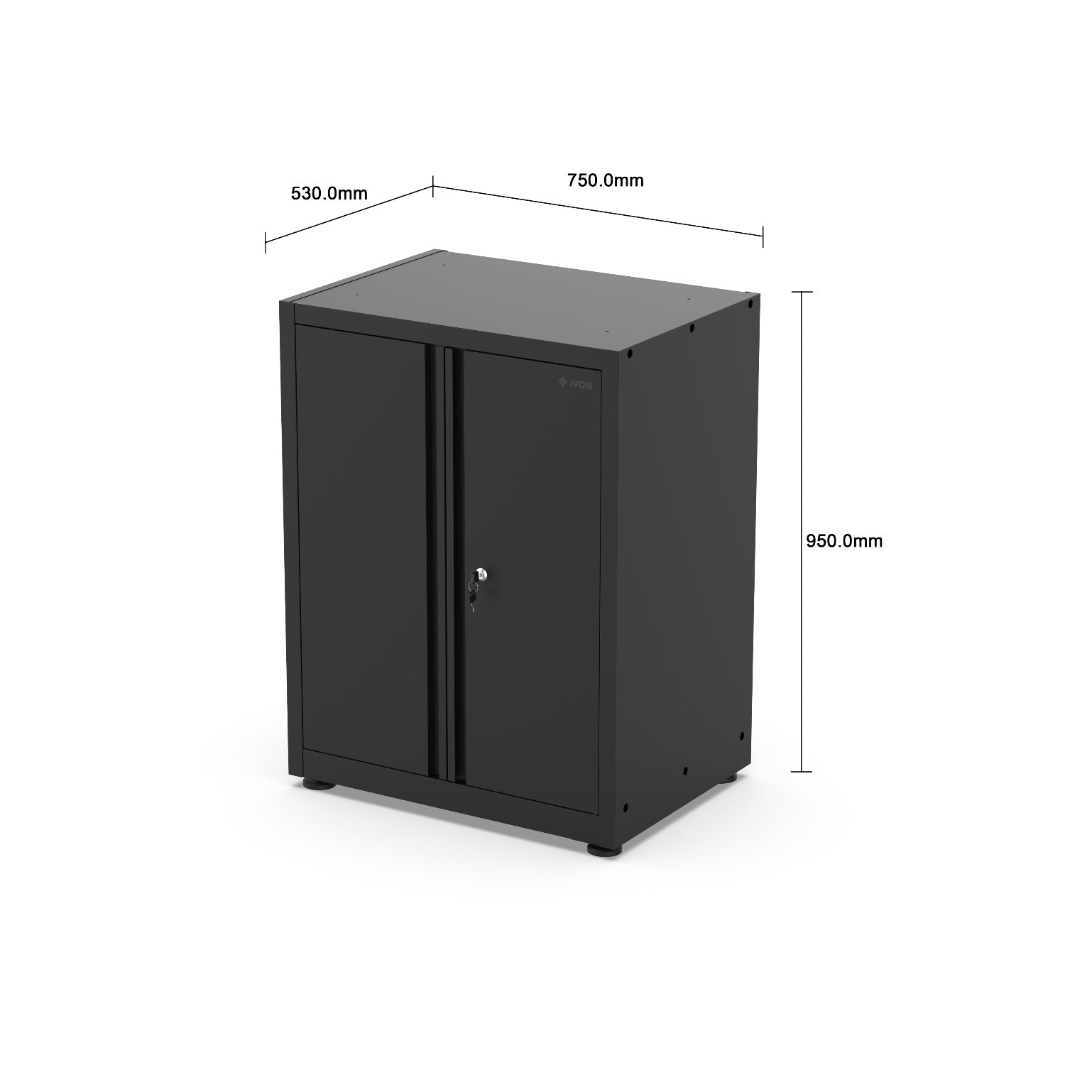 Lyxigt lågskåp med integrerade handtag och en höjd som passar under arbetsbänken.