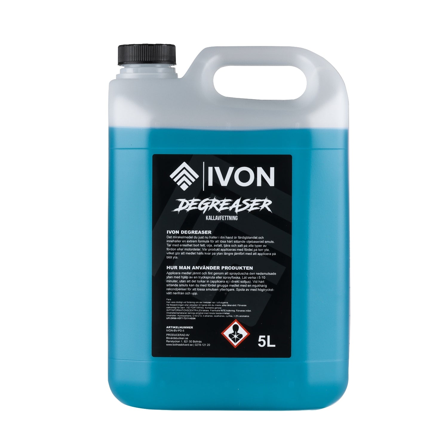 IVON DEGREASER Kallavfettning 5L – ett färdigblandat mirakelmedel som tar bort oljebaserad smuts, asfaltsfläckar, tjära och vägsalt.