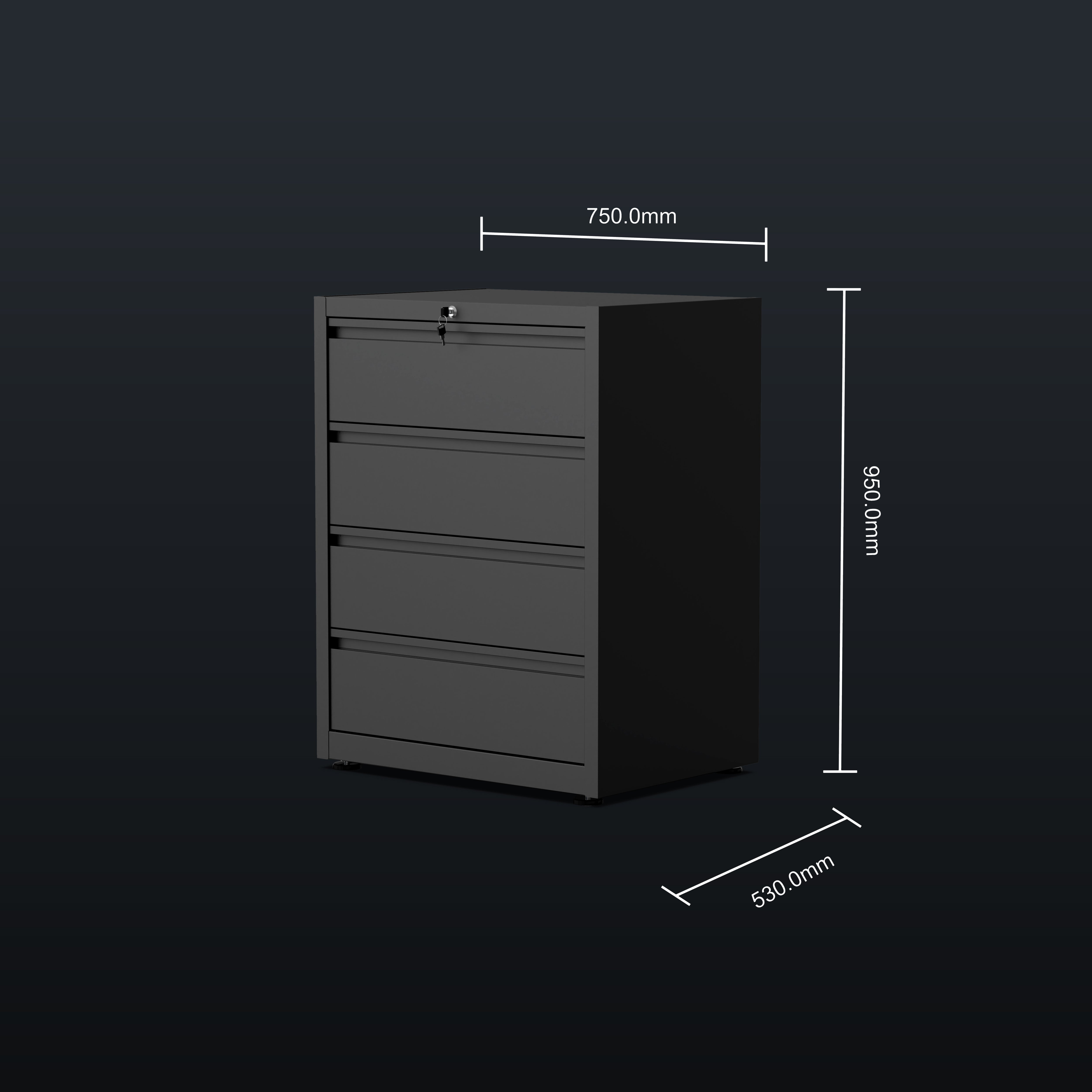 Luxurious chest of drawers with 4 ball-bearing and soft-closing drawers. The height is dimensioned to fit under the workbench.