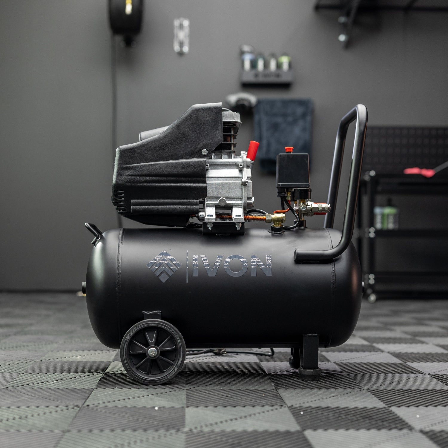 Powerful performance meets modern aesthetics. This air compressor is not only an efficient tool for your air-powered needs, it also looks stylish in the garage or workshop with its all-black finish and compact shape. Comes with 5 meters of hose.