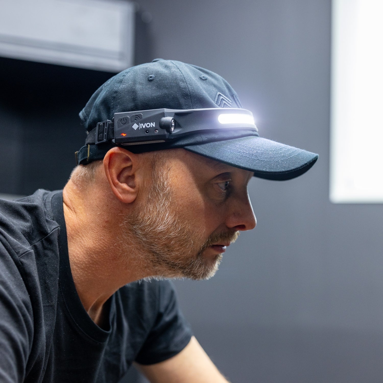 When you need extra light in the garage, workshop or for precision work, the IVON Motion Sensor Headlamp is the perfect solution. Thanks to the smart motion sensor, you can easily turn the lamp on and off by waving your hand at the battery. Perfect when you have dirty hands or are wearing gloves.