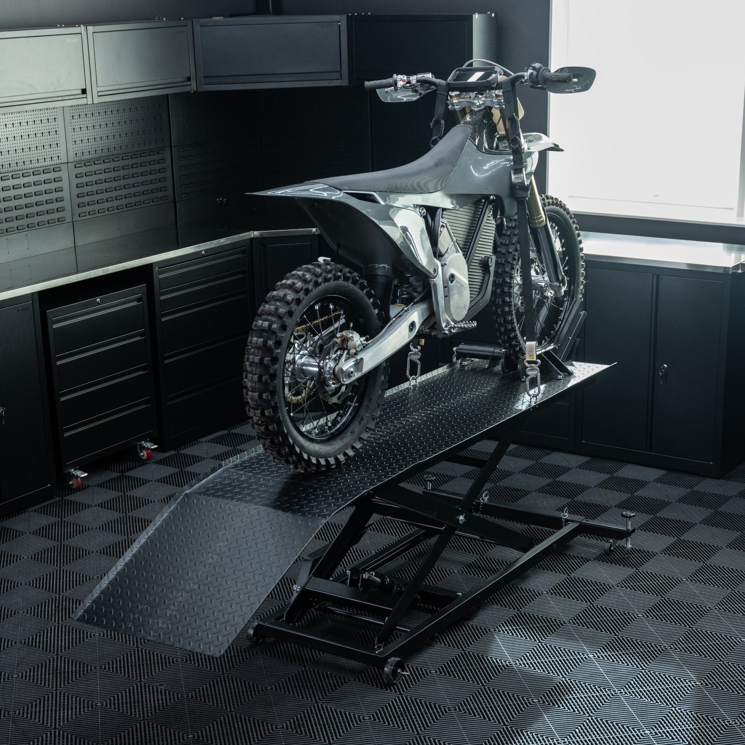 This motorcycle lift is made for those who demand more, both in function and form. With an impressive lifting capacity of up to 450 kg, it is built to handle everything from lighter motorcycles to heavier touring machines. The black design creates a stylish impression in your garage.