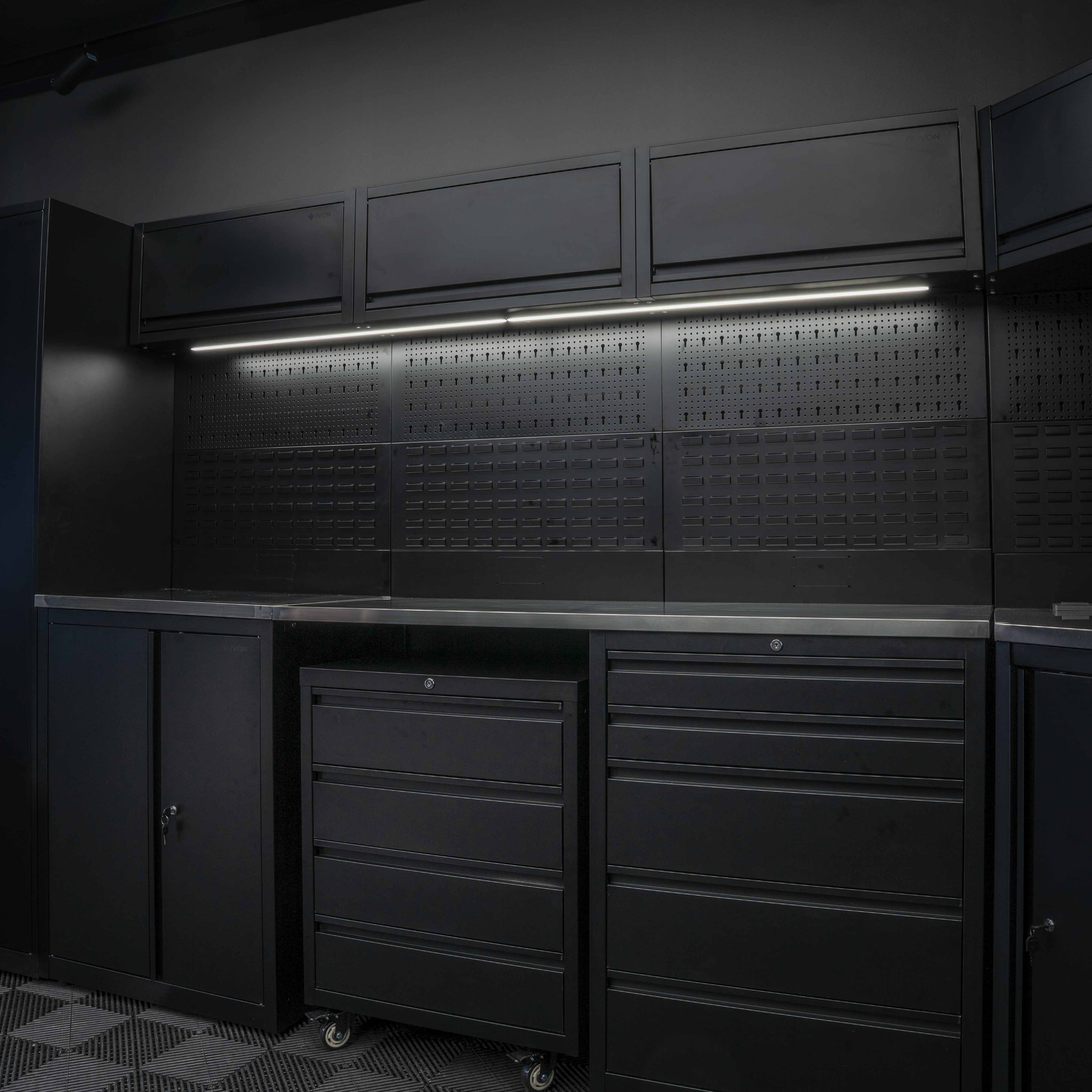 Förbättra din arbetsyta med vår stilrena och funktionella arbetsbänkbelysning i en elegant mattsvart design. Denna högkvalitativa belysning är speciellt utformad för att ge optimal belysning vid arbete i garage och verkstäder, samtidigt som den smälter in sömlöst i moderna och minimalistiska miljöer med sin stilrena design. Färgtemperaturen på 5000K ger ett klarvitt sken som håller dig pigg under långa arbetspass i garaget.