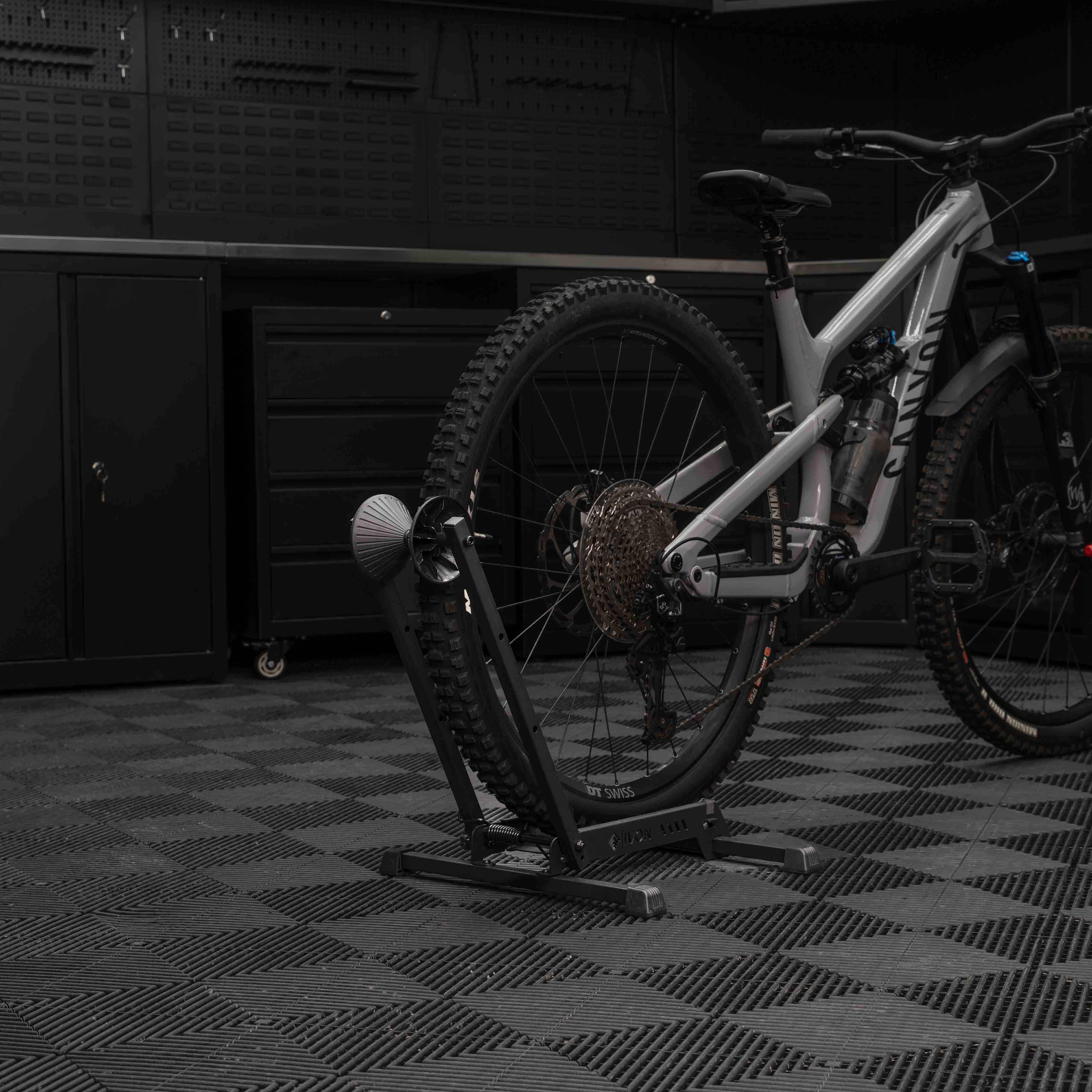 Stabilt och platsbesparande cykelställ utvecklat för dig som vill parkera din cykel säkert, utan att borra i väggar eller kompromissa med designen. Med en robust stålkonstruktion och en kraftfull fjädermekanism håller cykelstället cykeln stadigt på plats oavsett om det används i garage, förråd eller lägenhet.